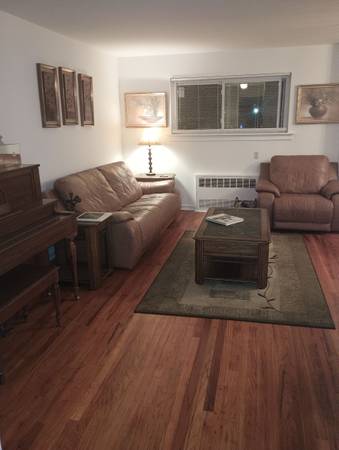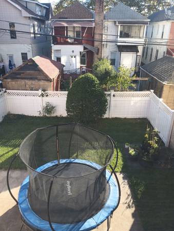 Spacious (2200sqft) newly renovated four bedrooms two and a half bath duplex apartment. (Owners unit) In a two family home. This unit has it all, tons of space, hardwood floors, updated eat in kitchen and baths. Split AC system throughout the house for air conditioning and heating for everyone's comfort. The eat in kitchen features top of the line stainless steel appliances. Granite countertops, plus a quarts breakfast bar. Also on this level you have a living room, dining room, powder room and a huge family room with an outdoor deck. Upstairs you'll find a large master bedroom with master bath and walk in closet. Both master and second bedroom can easily accommodate a king size bed. The third and fourth bedrooms are ample sized. Freshly painted and professionally cleaned throughout also there is a shared driveway and backyard with a washer and dryer on site.