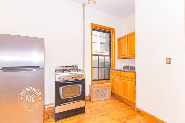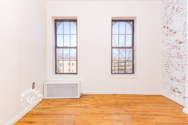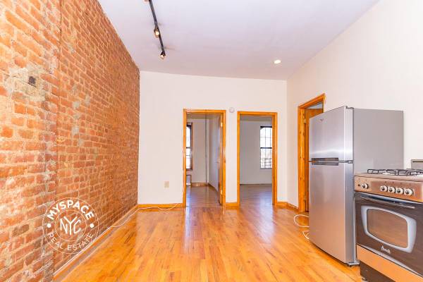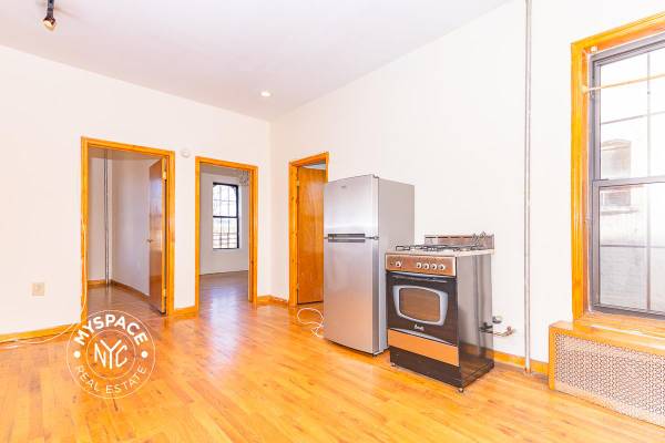 This apartment features spacious living room, queen sized bedrooms, stainless steel kitchen, modern bathroom, hardwood floors, and windows that let in natural light throughout.