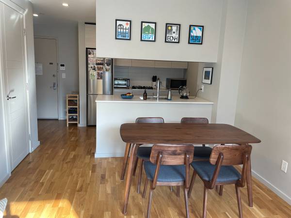 Additional details: The apartment is a very spacious and comfortable 1 bedroom with great amenities in the center of bustling Crown Heights! The unit faces south, so you get plenty of direct natural light throughout the day. The building was built in 2020, so everything is super modern, clean, and works well. The apartment is located right across the street from Union Market (great for grocery shopping!) in Crown Heights, less than a 5 minute walk from the 2/3, 4/5 and S trains. You'll be a 3 min walk from Franklin Ave, the high street of Crown Heights with fantastic bars and restaurants and a 15 min walk from the Brooklyn Museum and Prospect Park.