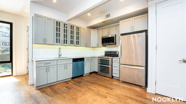 Beautiful duplex 4 bedroom apartment located on a newly renovated luxury brownstone. The apartment is over 2,000 sq. ft. with modern finishes, double living room, large open equipped kitchen with stainless steel appliances and large stone counter top, custom designed full bathrooms, large bedrooms with lots of closets space in each room, PRIVATE BACKYARD and large windows which provides tons of natural light during the day! Conveniently located 2 blocks from the 3/4/5 for an easy commute
