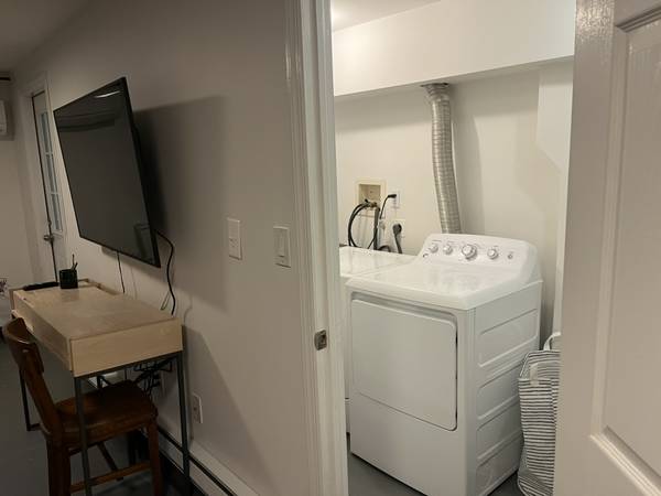 This is a newly renovated furnished studio with queen-size bed, sofa, washer/dryer, well-appointed kitchen w/dining table, split A/C system, Jacuzzi in bath tub/shower, lots of closet and storage space. Rent includes Internet, smart TV, all utilities and access to a shared backyard (we live in the above apartment).