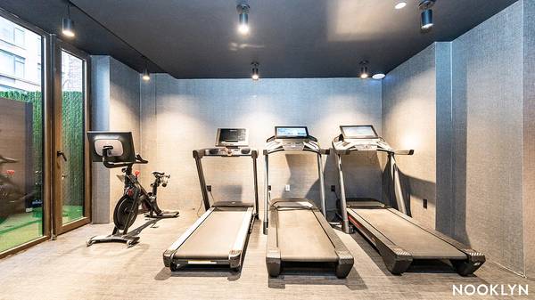 State of the art gym that leads to a beautiful green out door space.