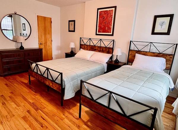 Large 1500 sq ft. Duplex apartment with large garden and patio area on a quiet block. Great Neighborhood! Very Family Friendly. Walking distance to Underwood Park, Ft. Green Park, Pratt University, The Barclay center, BAM and great restaurants right around at the corner. This apartment is the two full floors in the building. It has two entrances. One private ground level and one on the Parlor floor. There are 3 apartments in the building. The top two apartments are rented full time with lovely people. The building has a very homey friendly atmosphere which our tenants love. There is a fully stocked Kitchen with dishwasher, Microwave, toaster oven, coffee maker, Blender, and a Dining area, The Living room has a flat screen TV with internet and a Roku box loaded with streaming services. The Laundry area has washer/dryer, ironing board and Iron on the 2nd floor near the bedrooms. The Master bedroom has a Queen bed with wireless adjustable bed frame with massage. The second bedroom has an extra long twin and a Double bed. The Garden is accessible from the kitchen/Dining room area with a Lovely patio with table and chairs, and gas grill and a grassy area for kids and pets to play. Our super lives down the block. All utilities included. Available 1 month -11/1-11/30 flexible with $5000 for the month with $500 Security deposit