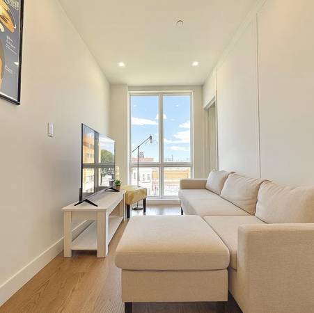 Massive 2 Bed / 2 Bath duplex in Bushwick, spanning two levels of bright and modern living space Tall ceilings and sleek hardwood floors throughout for an open, airy feel Spacious living room ideal...