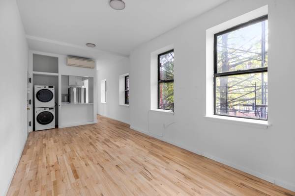 Welcome to this bright and stylish one-bedroom home at 148 Stuyvesant Avenue, where modern design meets Brooklyn character. The apartment features a spacious open layout that fills with natural light, high ceilings, and beautiful hardwood floors throughout. The kitchen is thoughtfully finished with stainless steel appliances, a full-size dishwasher, and plenty of counter space for cooking and entertaining. The bedroom fits a queen comfortably with room to spare, while the bathroom offers clean modern tiling and sleek fixtures. Laundry in the building adds the convenience every New Yorker appreciates.