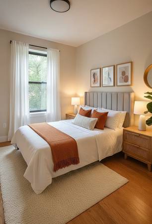 Spacious and well-appointed apartment in a modern multifamily building. Enjoy great natural light, a private garden, and convenient access to multiple subway lines.