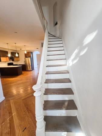 Discover this hidden gem located on a quiet, tree-lined block – a massive 4 bedroom 2.5 bath upper duplex apartment that truly feels like home. This thoughtfully designed space offers the perfect mix of comfort, style and city living. It's bright, airy, and full of character. Filled with tall ceilings, tons of natural light, hardwood floors, and big beautiful windows throughout. The open concept eat in kitchen flows right into a cozy sunroom that's perfect for morning coffee, a peaceful read or could even be used as additional storage! You'll also enjoy in-unit laundry (no more laundromat trips!) and a shared backyard with just one other tenant downstairs - ideal for hanging out, grilling, or soaking up some sun.