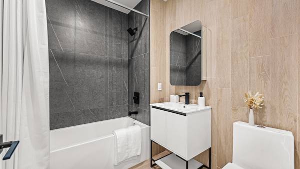 This bright, open 2br offers abundant natural light and modern finishes throughout. The kitchen is equipped with stainless steel appliances, a dishwasher, and an electric stove. Located in an elevator building with on-site laundry, roof deck access, and stunning city views, this home blends style and convenience in one perfect package. NET PRICE LISTED, GROSS IS 3300 WITH 2 MONTHS FREE RENT