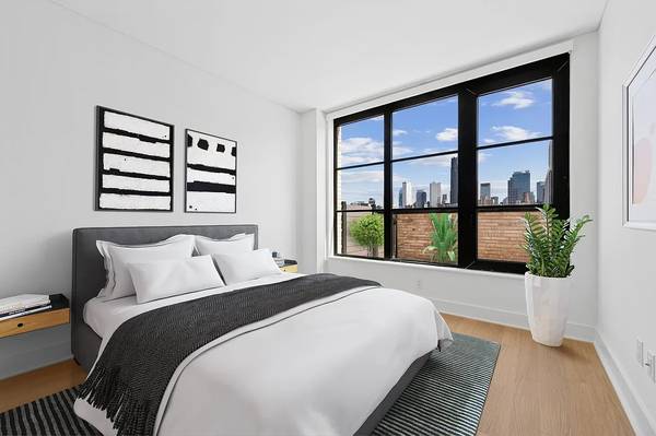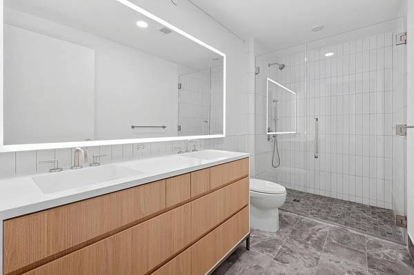 Top floor spacious winged 2 bedroom 2 bath layout with private terrace overlooking city views built for quiet living and entertaining. The apartment boasts 2 walk-in closets, Bosche in-unit washer/dryer, and double vanity in the primary bedroom suite