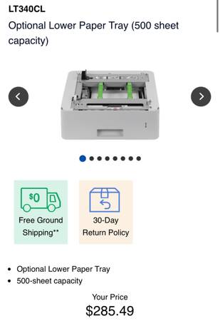 Add up to two optional LT340CL trays to the HL-L8360CDW, HL-L9310CDW, HL-L9410CDN, HL-L9430CDN, HL-L9470CDN, HL-EX470W, MFC-L8895CDW, MFC-L8900CDW, MFC-L8905CDW, MFC-L9570CDW, MFC-L9610CDN, MFC-L9630CDN, MFC-L9670CDN, MFC-EX670W. Add up to one LT340CL optional tray to the HL-L8360CDWT.