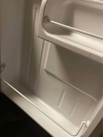 3-mo-old ice cold top freezer and refrigerator excellent for dorms, small rooms, etc., measures 19"h,19"d,17.5"w 1.6 cu.ft., cube-sized mini refrigerator freezer with reversible door, upper freezer,...