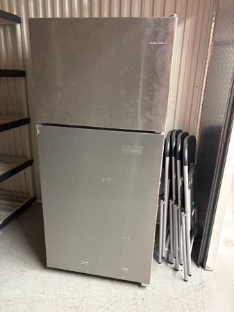 Giving away a 18.2 cu. ft. Top Freezer Refrigerator in Stainless Steel for free (originally 700$) if you’re willing to come get it asap from a storage unit on Gold street in Brooklyn and get rid of a few additional items in there (4 chairs, lightweight shelving system, nothing huge.. see pictures). The fridge is in great condition!