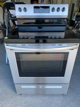Stainless Ceramic Glass top Glass Door Stove Range Oven induction convection air fryer/self clean unit used by home owner very dependable/reliable excellent working order condition. Can be delivered...
