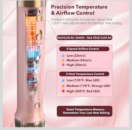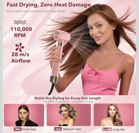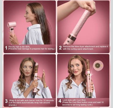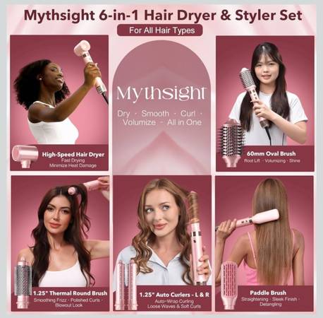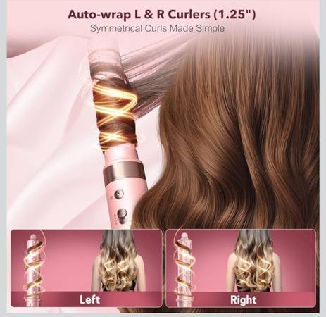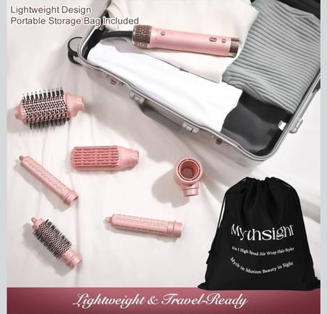 6-in-1 Air Styler, Hair Dryer & Blow Dryer Brush with Auto Wrap Curl L/R, Fast Drying, Smooth Blowouts, Root-Lift Volume, No Heat Damage Frizz-Free Thermal Brush with Travel Bag