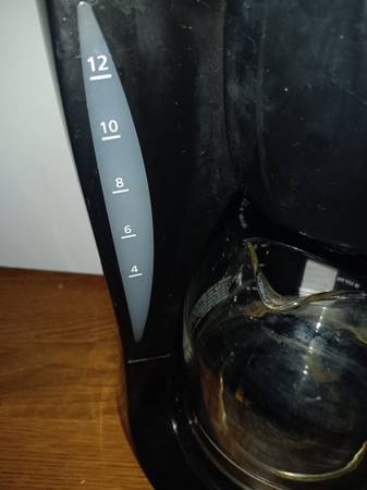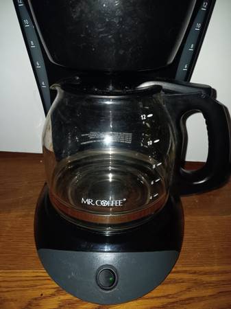 Selling a Mr. Coffee coffee maker that can brew up to 12 cups. It shows signs of use, but it's still functional. Great for your morning coffee routine!