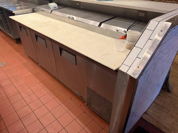 In good working order but 6 years old. 3 door reach-in that has been regularly maintained. 1. includes removable full length cutting board attachment 2. 3 mise en place access panels 3. heavy duty...