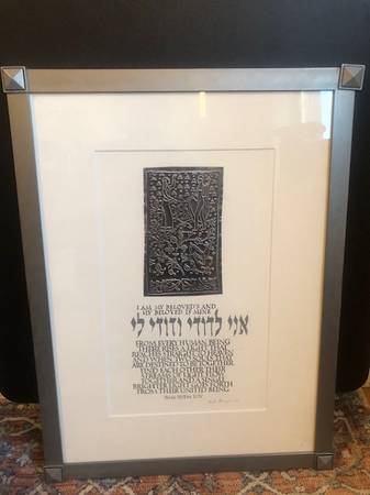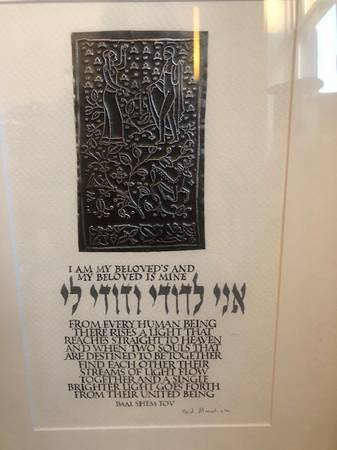 Here are examples of his work: https://www.judaica.com/artists/gad-almaliah.html Rare piece for a wedding or love--Jewish--see photos. Perfect condition, framed.