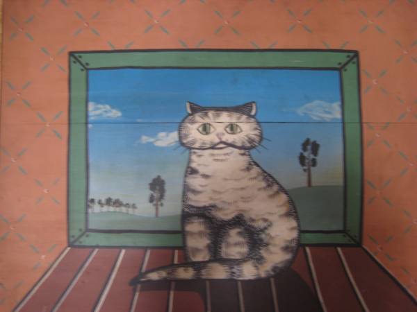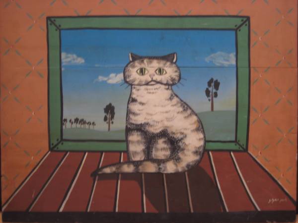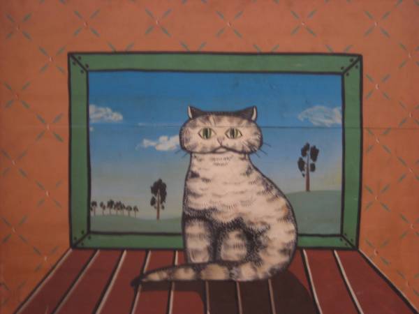ABSOLUTELY CHARMING OIL PAINTING OF A CAT BY FAMOUS DC ARTIST AND MURALIST G BYRON PECK; OIL ON BOARD; SIZE: 30 X 36 INCHES; SIGNED; IN GOOD CONDITION; GREAT ADDITION TO YOUR COLLECTION !