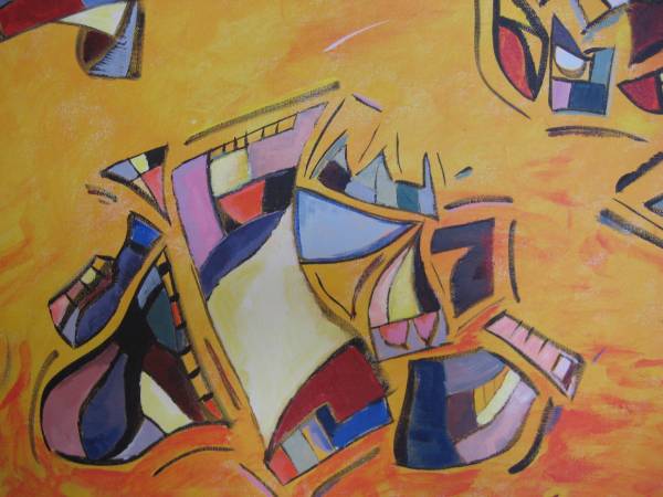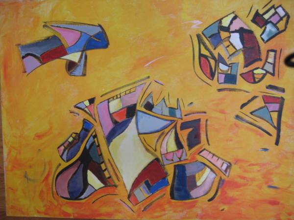 BEAUTIFUL GEOMETRIC ABSTRACT COMPOSITION OIL PAINTING - GREAT COLORS; BY CONTEMPORARY ARTIST - SIGNED ON THE BACK; OIL ON CANVAS; CANVAS SIZE: 18 X 24 INCHES; NOT FRAMED; TALENTED ARTWORK.