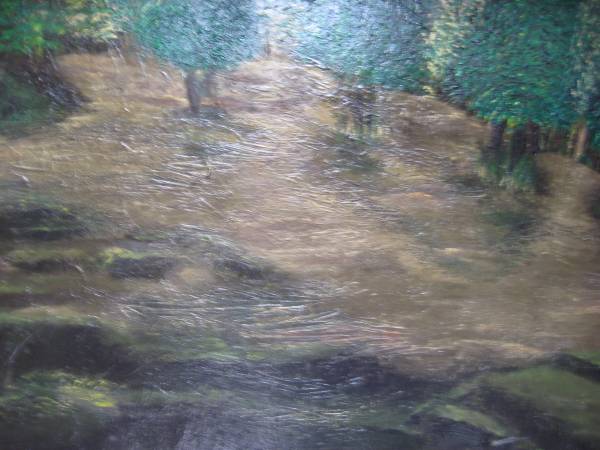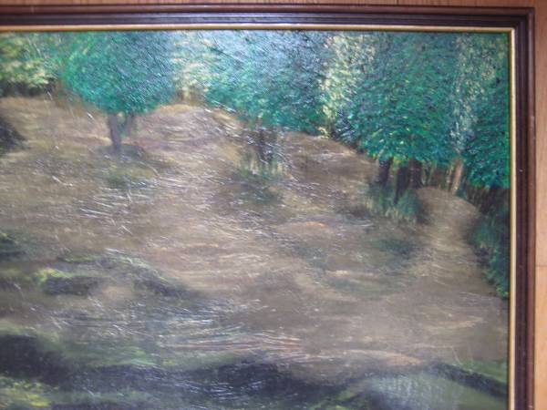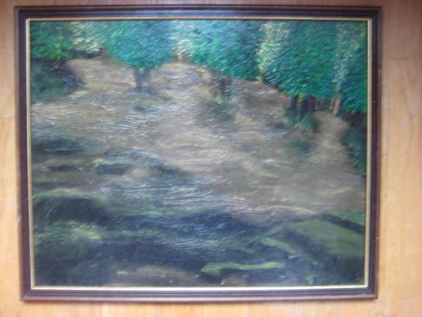 AMAZING OIL PAINTING BY FAMOUS MUSICIAN AND ARTIST GEORGE KAYATTA; SIGNED AND TITLED ON THE BACK "ROCK PARK"; OIL ON BOARD; SIZE: 19 X 23 INCHES; SIZE (FRAMED): 20 X 25 INCHES; VERY TALENTED ARTWORK...