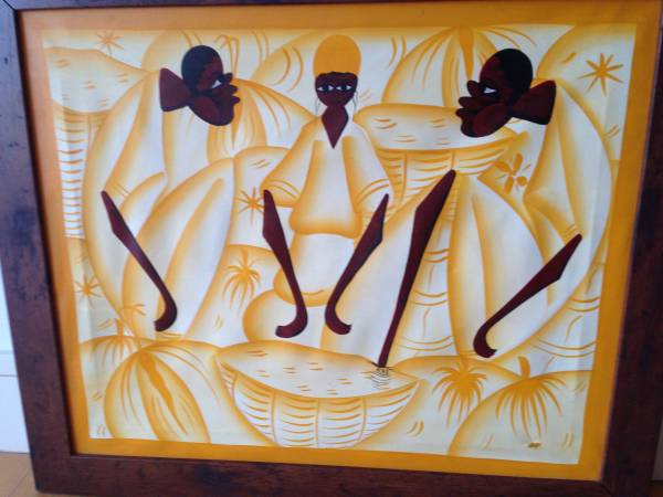 BEAUTIFUL SIGNED HAITIAN/CARIBBEAN OIL PAINTING; OIL ON CANVAS; CANVAS SIZE: 19 X 23 INCHES; SIZE (FRAMED): 22.5 X 26.5 INCHES; PROFESSIONALLY FRAMED; GREAT COLORS !