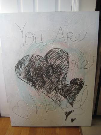 HUGE ABSTRACT OIL PAINTING "YOU ARE MY WHOLE WORLD"; OIL ON CANVAS; DONE IN IMPASTO STYLE; CANVAS SIZE: 36 X 48 INCHES; GREAT ADDITION TO YOUR COLLECTION !