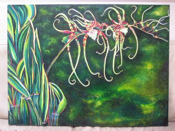 VERY BEAUTIFUL HUGE OIL PAINTING OF ORCHID GARDEN; SIGNED; OIL ON CANVAS; CANVAS SIZE: 30 X 40 INCHES; AMAZING COLORS - GREAT ADDITION TO YOUR COLLECTION !