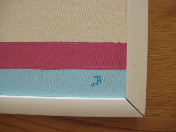 BEAUTIFUL MINIMALIST STYLE LARGE GEOMETRIC ABSTRACT OIL PAINTING ; MONOGRAMMED L/R; DATED 85; OIL ON CANVAS; CANVAS SIZE: 24 X 36 INCHES; SIZE (FRAMED): 25.5 X 37.5 INCHES; PROFESSIONALLY FRAMED.