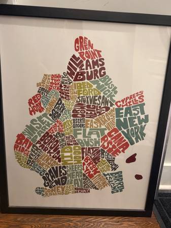 Framed Brooklyn map poster Lightweight, handmade frame. 26x32 inches. Gently used in excellent condition, never got around to hanging it. Poster alone sells for $25 online. Framed versions go for...