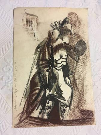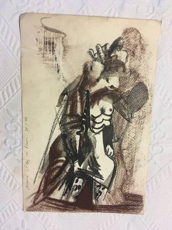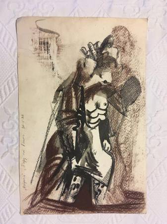 This piece is an original abstract painting that is mixed "Bespera" on Paper by artist "cant read it". This piece is created with a number of techniques for Charcoal drawing. It is a 14 1/2"H x 9 1/2" W Art Paper, Great Piece of Art [Has a small "tear" in the paper review picture #5] One of a Kind. This piece will make a great accent piece to any room.