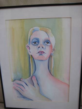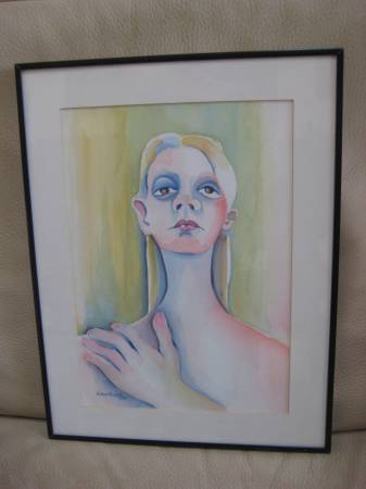 INTERESTING PSYCHOLOGICAL PORTRAIT OF A YOUNG WOMAN; WATERCOLOR ON PAPER; SIZE: 10 X 14 INCHES; SIZE (FRAMED): 13 X 17 INCHES; PROFESSIONALLY FRAMED WITH GLASS.