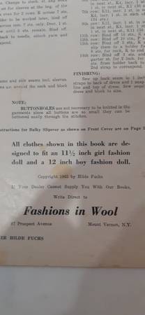 Rare 23 Pgs 1963 Black & White Instruction Catalog to Hand Knit, & Sew Clothes for Fashion Dolls! Good Condition. Pet free, smoke free home.