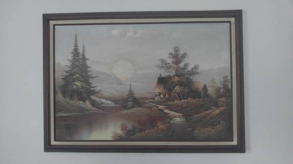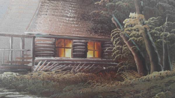 Clean condition. Around 70 years old. Hand painted. 29"x41" inches. No holes, odor, dust, bugs, damages, etc. Signed R.Cooper