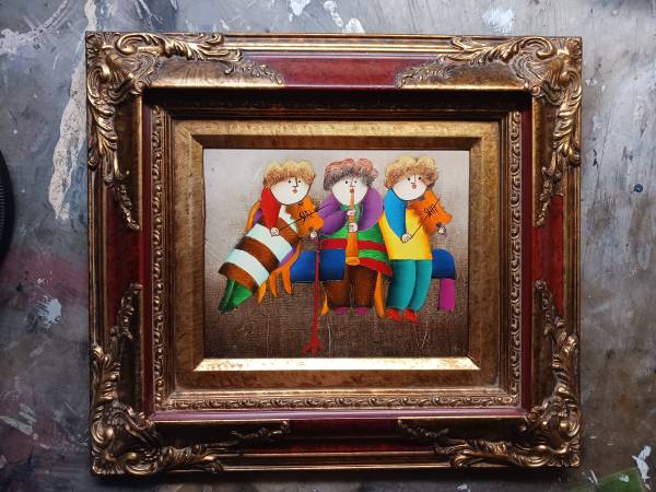 Good clean condition. No problems. 16"x18" inches. Solid wooden frame with gold leaf. Just beautiful!