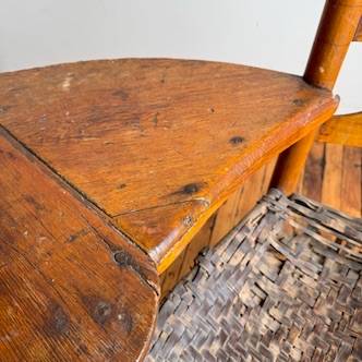 Condition: Fair antique condition. Woven seat needs replacement to be functional. Moderate wear throughout with scuffs and patina consistent with age and use. Missing a drawer – see photos.