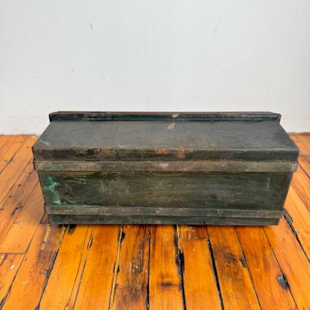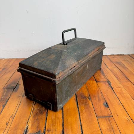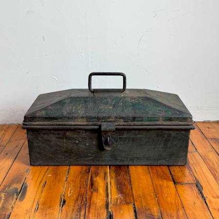 Antique Industrial Green Metal Tool Chest / Strongbox