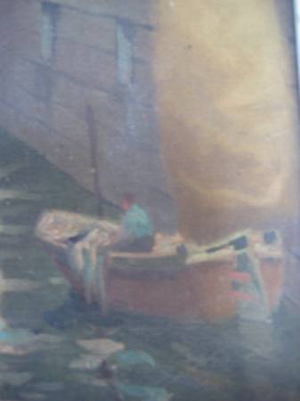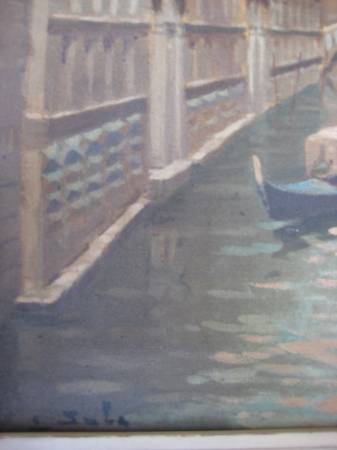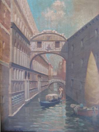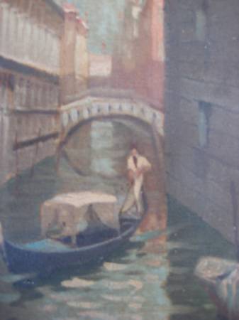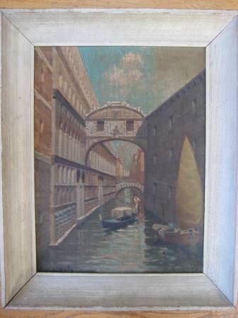 ANTIQUE EARLY 20TH CENTURY OIL PAINTING OF VENICE CANAL; OIL ON CANVAS; CANVAS SIZE: 12 X 16 INCHES; SIZE (FRAMED): 16 X 20 INCHES; FRAMED IN OLD WOODEN FRAME.
