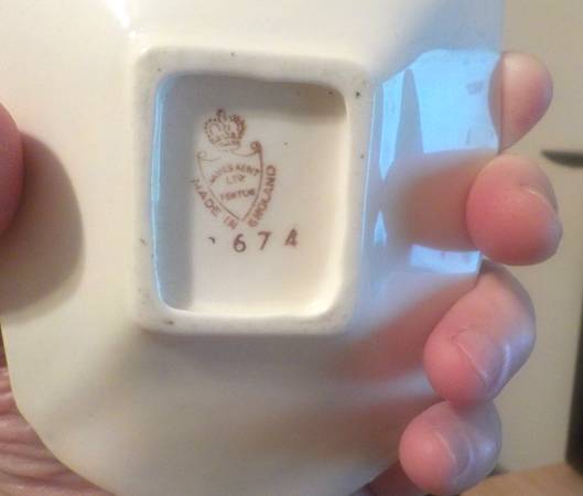 The blue dish is James Kent Ltd Fenton Made in England ?674. Based on researching the ID Mark, and my grandparent’s ownership, odds are this was made between 1913 and 1930.