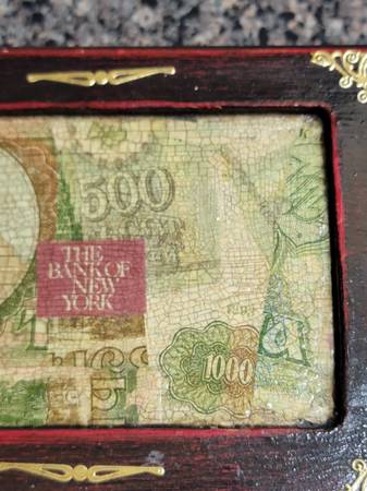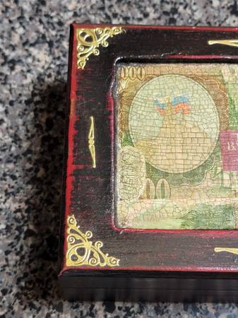 1993 year Russian currency decoupaged on top along with THE BANK OF NEW YORK In great condition 5.75" by 3.25" by 2" (height) Comes form pet and smoke free house. Cash and local pick up. If you see...