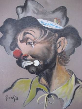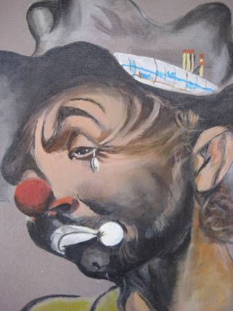 BEAUTIFUL VINTAGE OIL PAINTING OF A HOBO CLOWN; OIL ON CANVAS; CANVAS SIZE: 16 X 20 INCHES; NOT FRAMED; SIGNED; TALENTED ARTWORK !