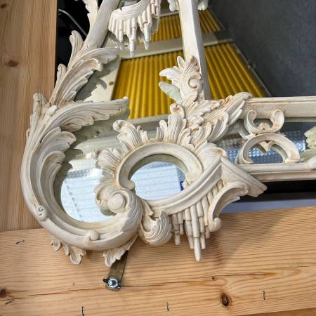Very heavy and currently secured in a crate for transport. Matching second mirror available—please inquire.