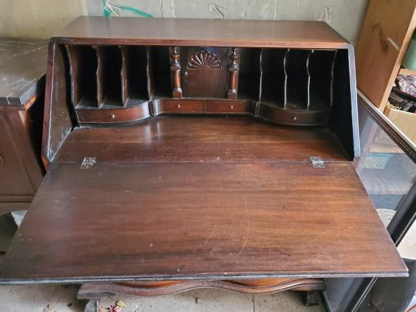 This is a refinished mahogany slant desk in excellent condition. The desk is from the 1900 to 1950 time period. I can help with delivery.