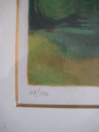 AMAZINGLY BEAUTIFUL LITHOGRAPH BY FAMOUS ISRAELI ARTIST NAHUM GUTMAN; LIMITED EDITION COLOR LITHOGRAPH SIGNED AND NUMBERED 118/150; SIZE: 15 X 20 INCHES; SIZE (FRAMED): 22 X 30 INCHES; WONDERFULLY FRAMED IN HAND MADE WOODEN FRAME BY ISRAELI ARTIST YORAM GIL; GREAT ADDITION TO YOUR COLLECTION !