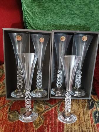 New In Box Set of 8 flutes, Two new boxes of Crystal d'Arques Millenium Champagne Flute, 2 flutes in each box plus 4 flutes without box