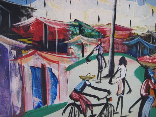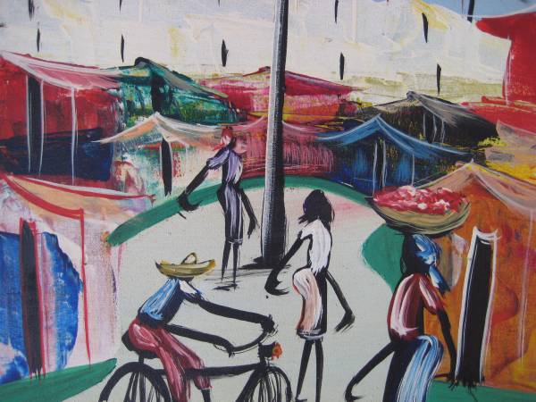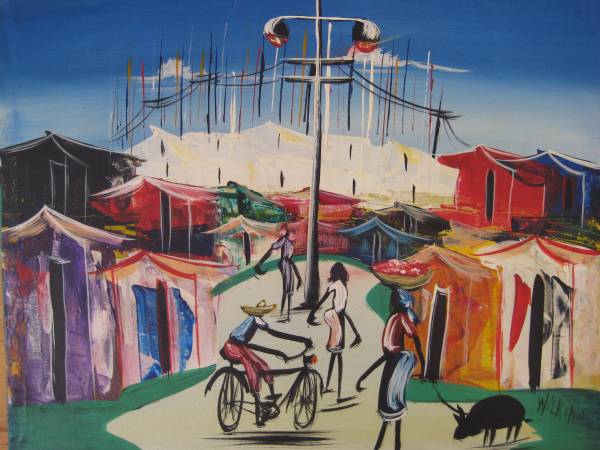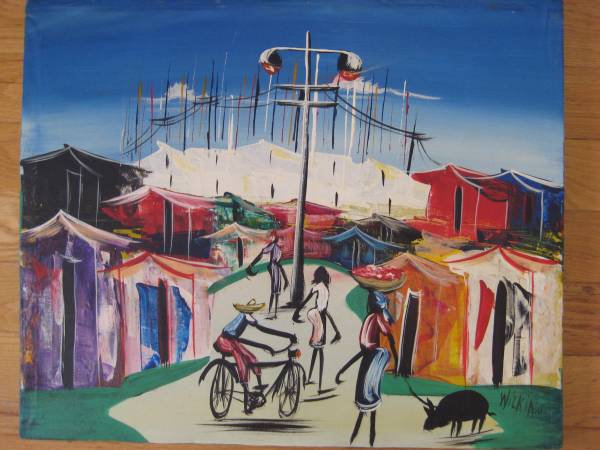 BEAUTIFUL HAITIAN STREET SCENE OIL PAINTING; OIL ON CANVAS; CANVAS SIZE: 20 X 24 INCHES; NOT FRAMED; SIGNED "WILKINS"; NICE COLORS !