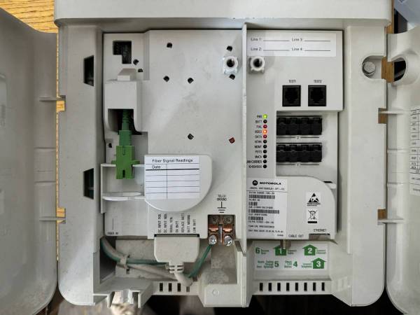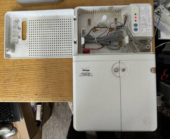Verizon FIOS Optical Network Terminal Motorola PN 546595-005-00 Model ONT1000GJ4. Pulled from my working environment, my tenant’s space, prior to the end of his lease and Upon termination of his Verizon FiOS services. Pretty sure this could handle 1 gig service. Comes as pictured.