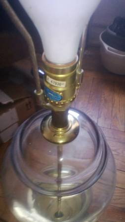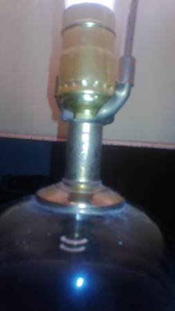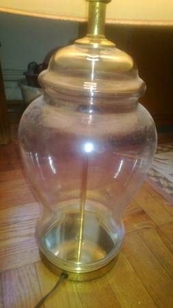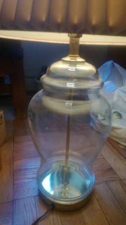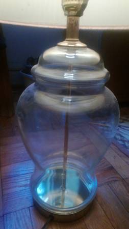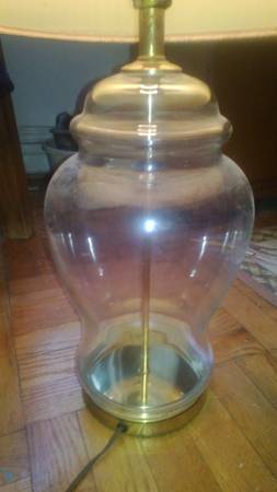 Beautiful, beautiful, Clear Glass Ginger Jar Lamp with shade. The shade does have some damage. If you have any questions please ask. Thank you