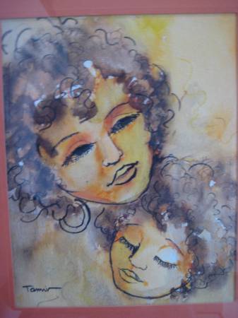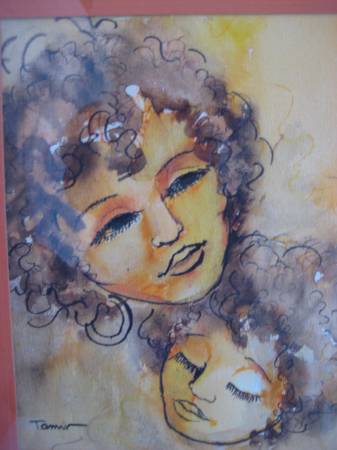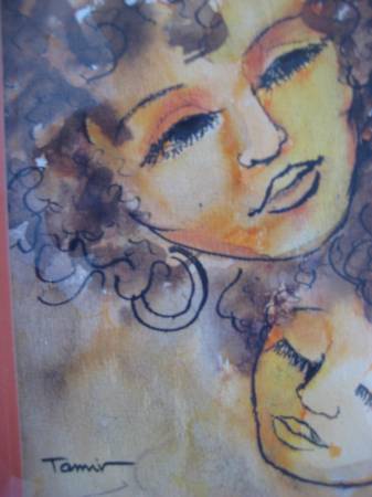 WOMAN PORTRAIT WATERCOLOR PAINTING SIGNED TAMIR; WATERCOLOR ON PAPER; SIZE: 7.5 X 10 INCHES; SIZE (FRAMED): 12.5 X 15 INCHES; FRAMED IN WOODEN FRAME WITH GLASS.