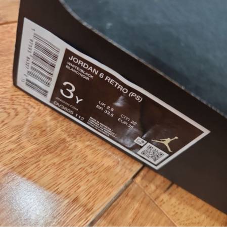 Jordan 6 Retro White and Black Sneakers Stylish and comfortable kids' sneakers in white and black. Perfect for everyday wear. Size 3 Pet/Smoke Free Home Two pair available Nike, Lacoste, Airmax, Air...