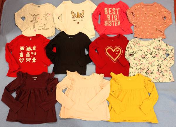-11 long sleeve t-shirts (Cat and Jack, Old Navy, Gap, Carters, and Children’s Place)